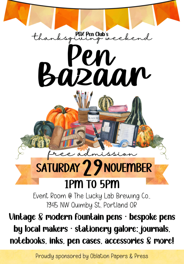 Continuing its annual tradition, the Pen Bazaar is being hosted by the PDX Pen Club the weekend after Thanksgiving.